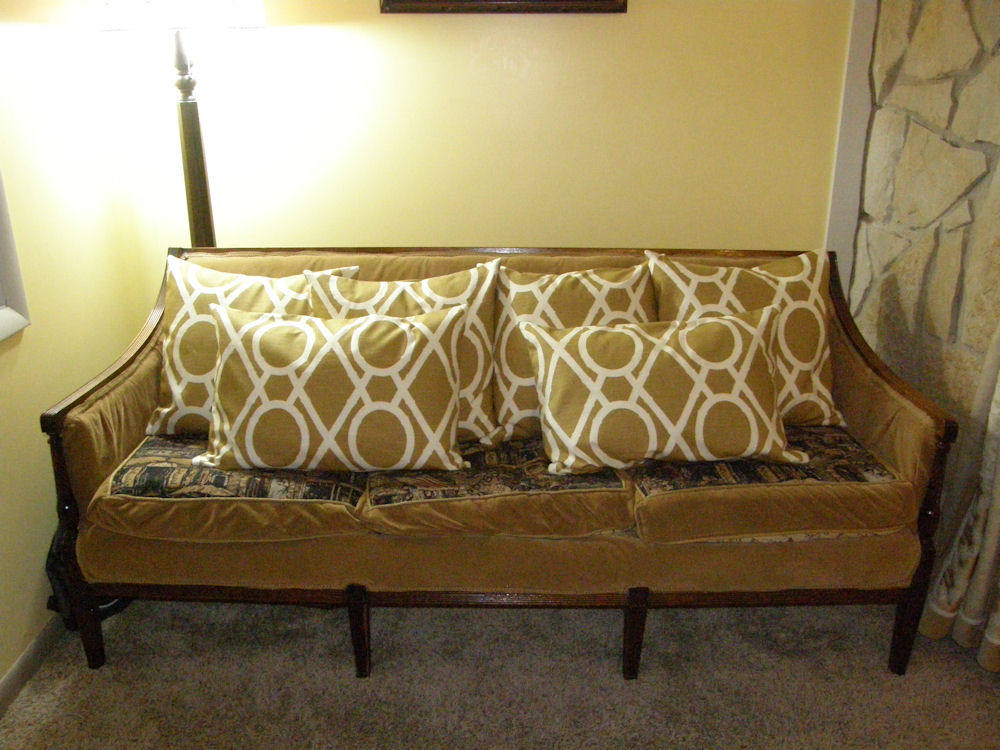 Christel Claunch of Timeless Home asked me to make pillows out of fabric she purchased. These yellow square and rectangle pillows will look great on a grey couch. |  |