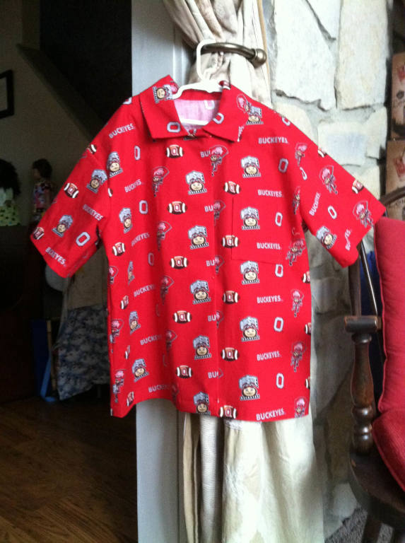 A grandmother wanted an OSU button down short sleeve shirt for her grandson. She purchased the fabric and I turned it into a young boy’s fashionable fan gear! |  |