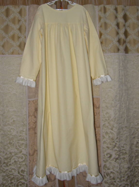 A grandmother saw the Nighttime with the Nutcracker nightgowns with trim. She wants her granddaughter to have a yellow nightgown with long sleeves and trim for a Christmas gift. I purchased the fabric and trim, and the project is getting started! |  |